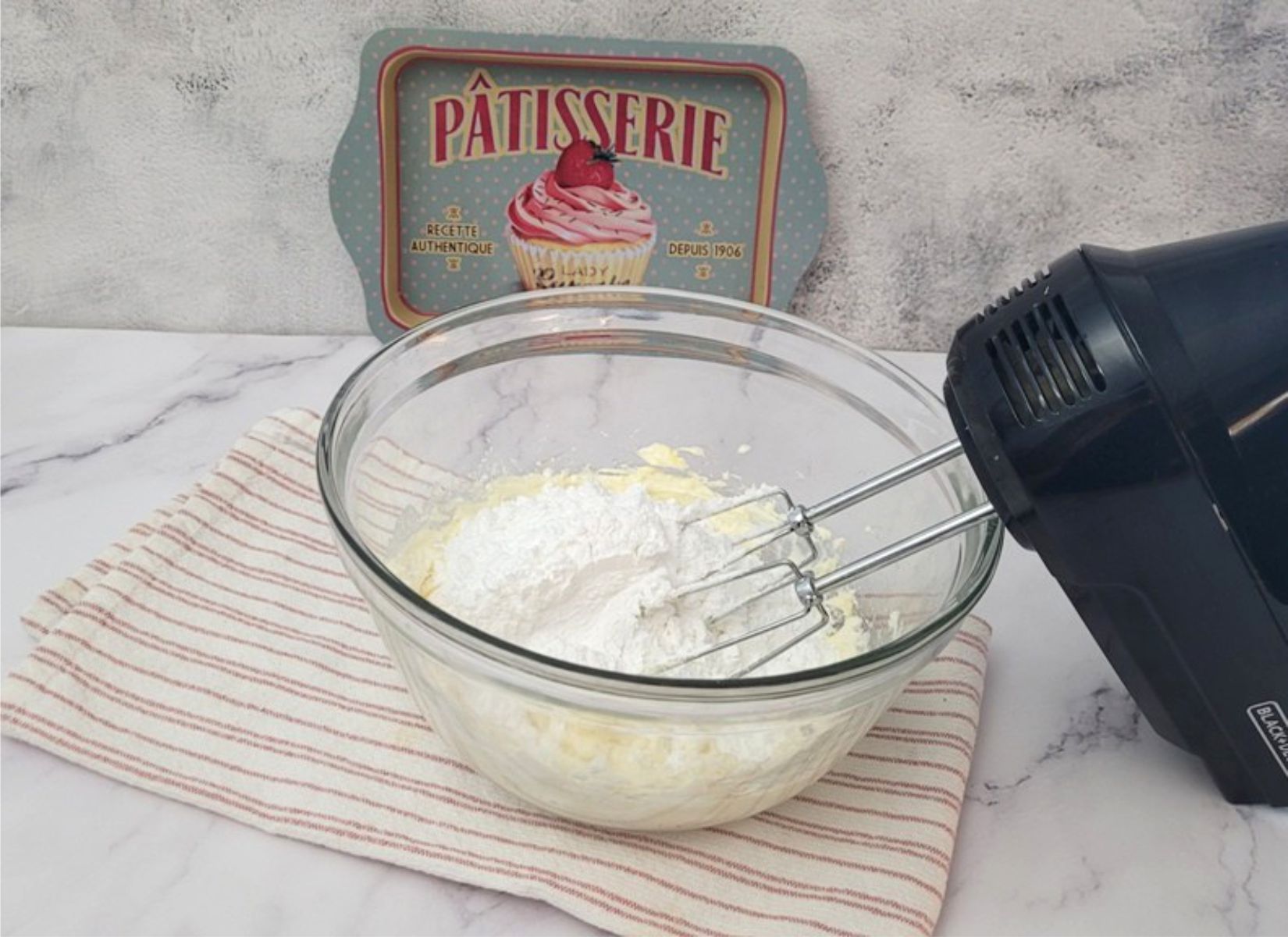 - Add powdered sugar to mixing bowl. Start mixing on low speed and gradually increase speed to medium. Scrape sides and bottom of bowl. Continue to mix until well combined.2½ Cups Powdered sugar